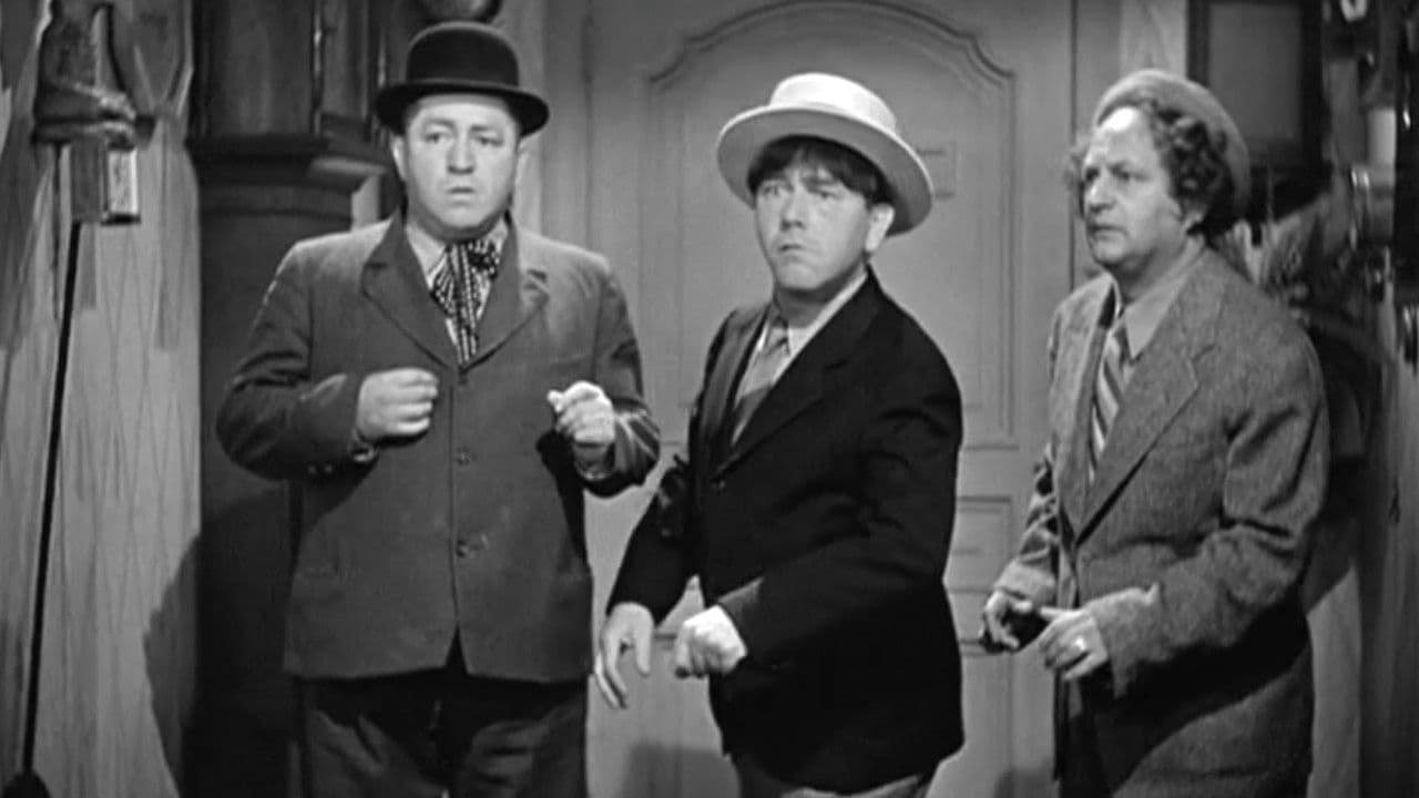 The stooges are door-to-door salesman peddling a weight reducing machine, until they come to the house of an eccentric inventor, where they are mistaken for new caretakers, are left to guard his house, and must contend with enemy spies and a mysterious pie thrower.