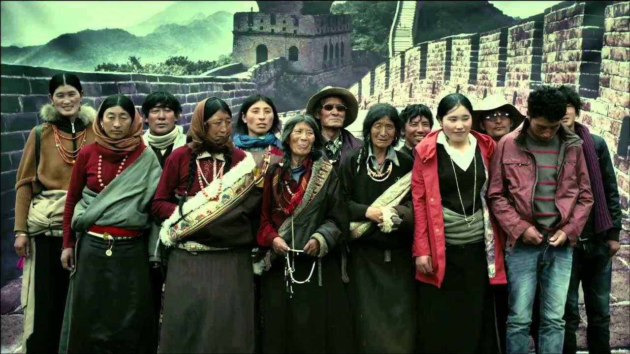 A young itinerant photographer and his assistant suggest to Tibetan nomads to photograph them in front of various background.