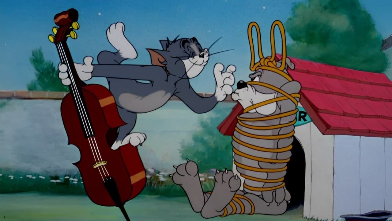 Tom ties up Spike and sneaks into the courtyard of the glamorous Toodles Galore with his bass, hoping to woo her with his song, much to the annoyance of a sleeping Jerry.