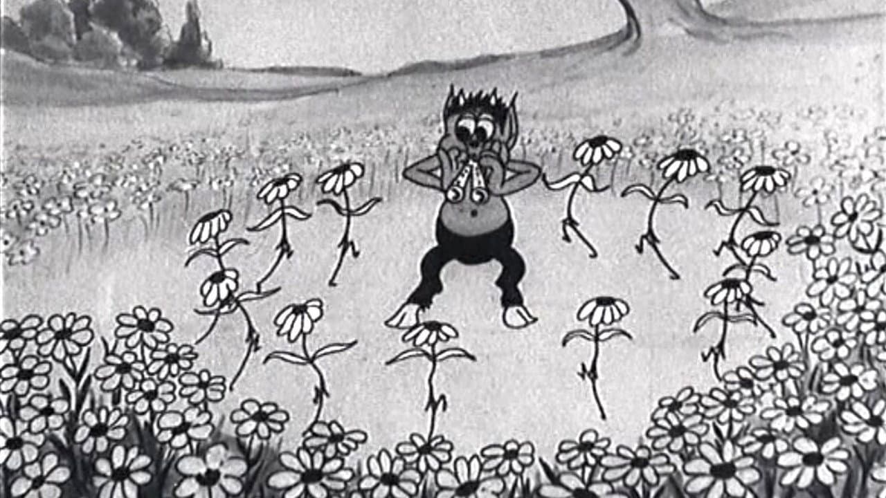 The mythological satyr plays some tunes on his pipes and gets various flora and fauna dancing to them. Two clouds also dance; they bump into each other, causing lightning strikes that start a forest fire. The animals rush to escape the fire. Finally, an animal comes to tell Pan of the fire; he rushes to it, and gets it to dance to his tune, right into the lake.