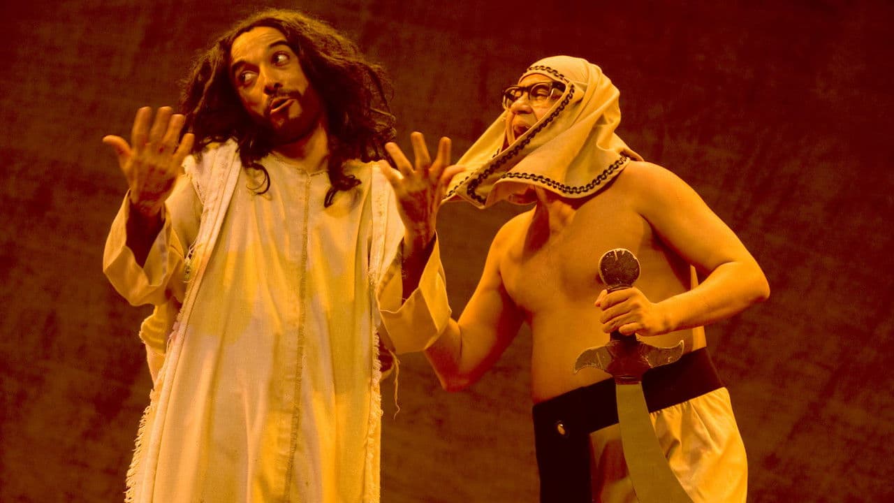 The comedy tells the story of Hermanotheus, brother of Micalateia and typical Hebrew of the year zero, companion, good shepherd and obedient. He receives the divine mission to guide his people to the land of Godah, in a satire on the biblical story of Moses. In a setting that represents an immense desert, actor Ricardo Pipo plays Hermanotheu, who encounters characters on the way from Cleopatra to the son of the Whole -Powerful. Actors Adriana Nunes, Adriano Siri, Jovane Nunes, Victor Leal and Welder Rodrigues take turns in the other roles. The voice of God, which appears in the off-screen, is by Chico Anysio. Following the group's line of satire, “Hermanoteu in the Land of Godah” visits the diversity of the Bible. The comedy also makes numerous quotes from the modern world, bringing the past closer to the present.