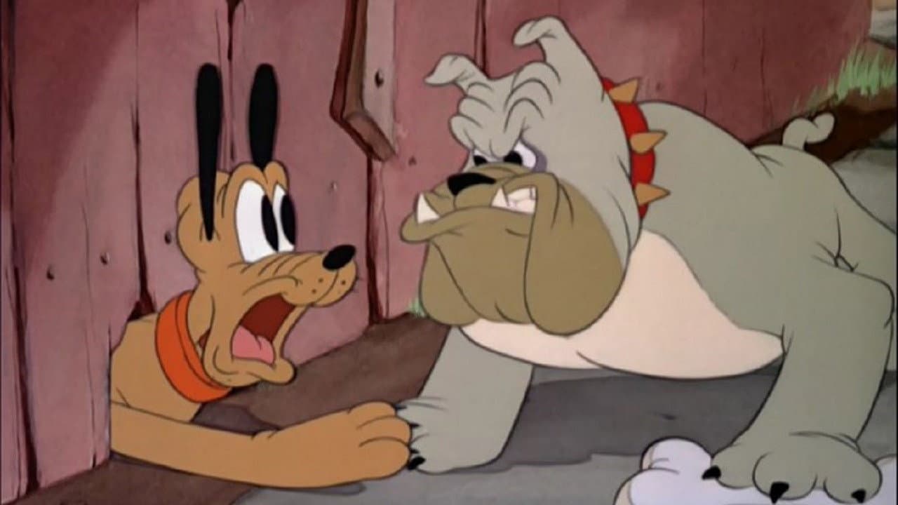 Pluto finds a bone - but also finds Butch the bulldog, who claims it for himself. Idea: Pluto paces off a distance, buried treasure style, and digs a large bone-shaped hole. Butch falls for it, and while he's digging deeper, Pluto almost makes off with the bone. Butch catches on just in time and chases Pluto, who ducks into a junkyard. The bone gets sucked into in a squeeze-bulb horn, which Pluto does battle with.